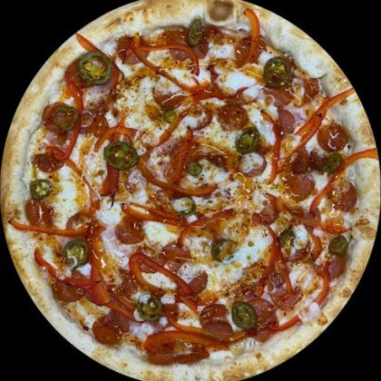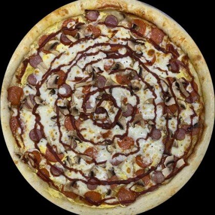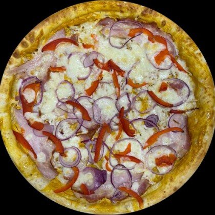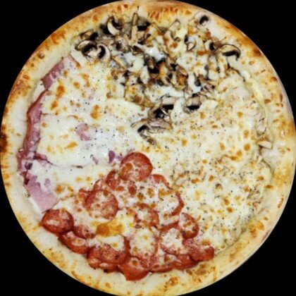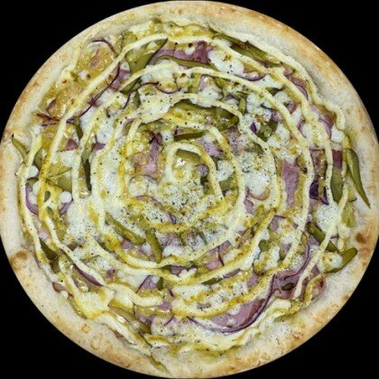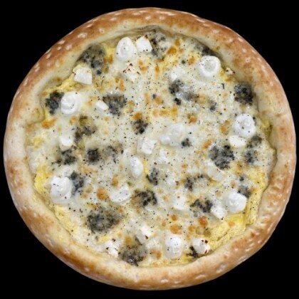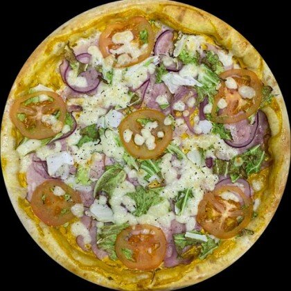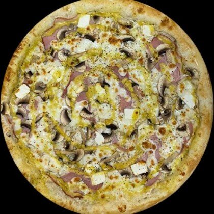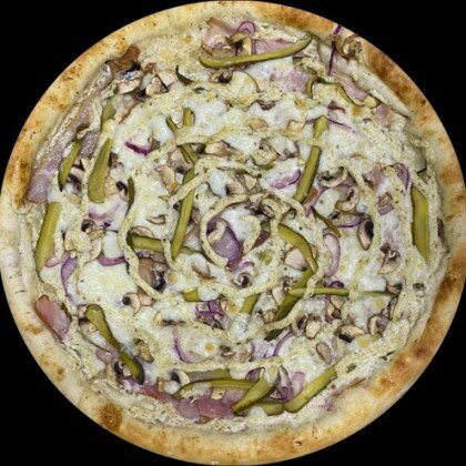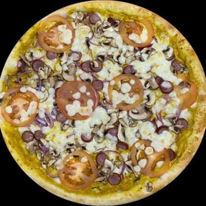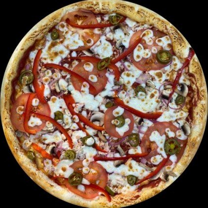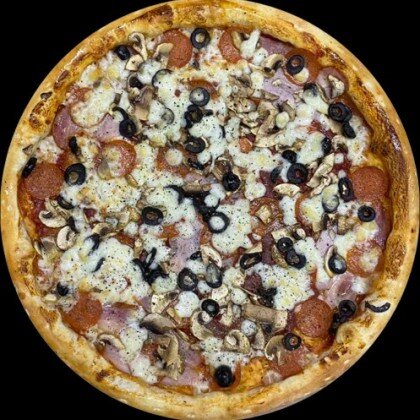 Пицца-соус,сыр Моцарелла,свежий перец,шампиньоны,свежий томат,сыр Фета,маслины,базилик.